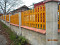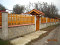 - Зидан забором с двумя деревянными воротами.