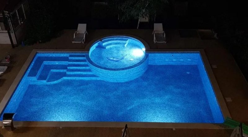 Во дворе есть бассейн 10/6 м. и детские диаметром 3,5м.