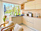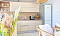 Он имеет две спальни, ванную комнату с туалетом, большую гостиную со столовой и кухней, застекленную беспрофильными окнами, через которые открывается прямой вид на море.