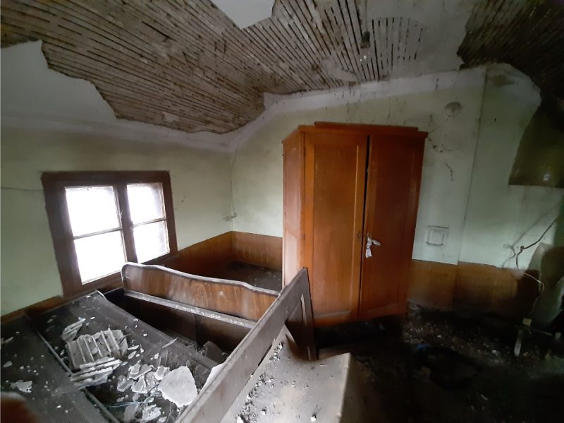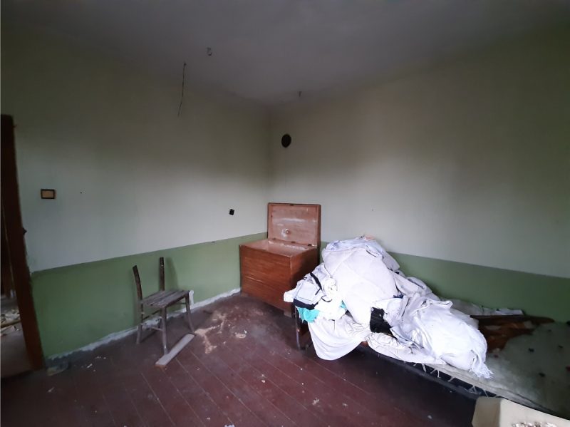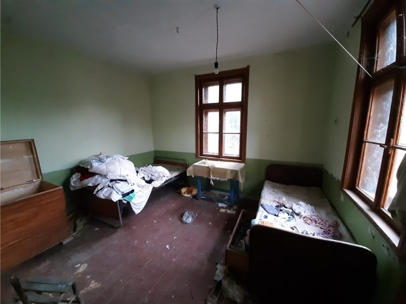 Второй дом расположен недалеко от главного здания. Это строение имеет один уровень и состоит из трех помещений – большой гостиной с кухней и столовой, одной спальни и помещения для ванной комнаты. Также в передней части дома есть крытая веранда. Как и главное здание, это также требует большого количества времени и денег, чтобы вернуть его в некогда хорошее и пригодное для использования состояние.