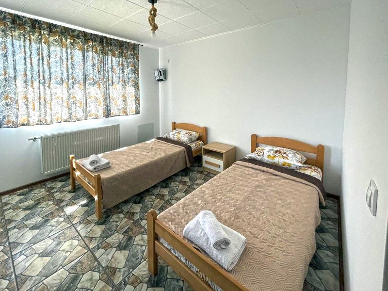Три дома площадью 40 кв. м состоят из двух комнат, небольшого коридора, ванной комнаты с туалетом и веранды, а четвертый — площадью 60 кв. м состоит из одной комнаты с мини-кухней и туалета. К домам можно легко подключить горячую воду.