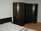 Одна из спален частично меблирована двуспальной кроватью и угловым шкафом.